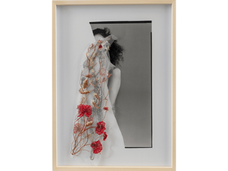 Busca materiais diversos entre si tais como pedras, fotos antigas, pérolas, tecidos, adereços e porcelana entre outros. Através do encontro de mundos que a colagem propicia, procura reconstruir vivências com poesia e leveza, trazendo elementos guardados em gavetas, armários, estantes e sebos.